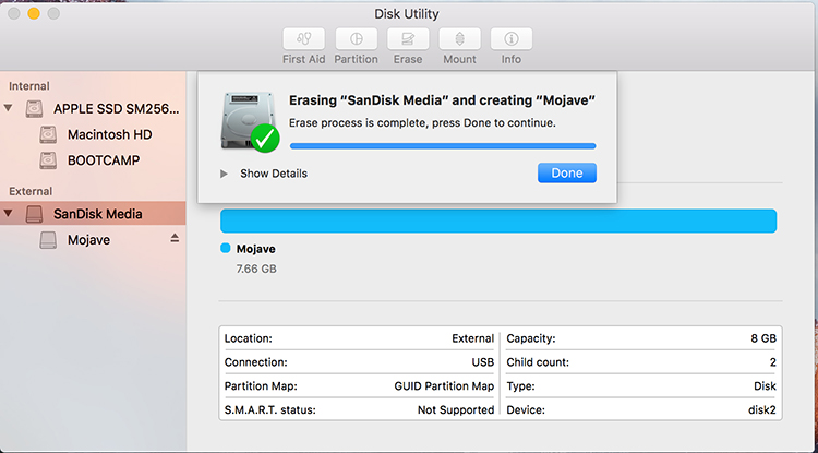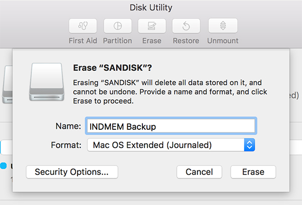 Click on “Erase”, and exit Disk Utility after the Erase process is completed.
