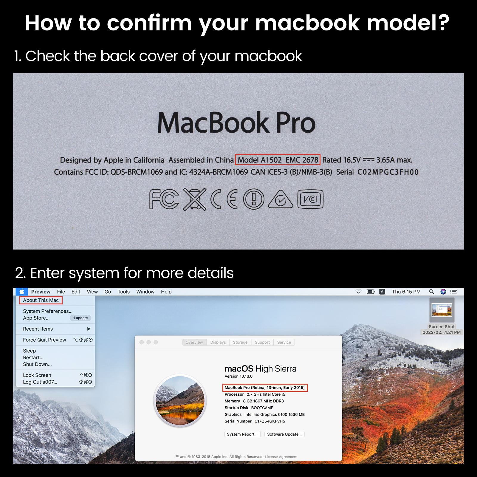 13 inch 2013-2016 A1502 MacbookPro11,1 MacbookPro12,1