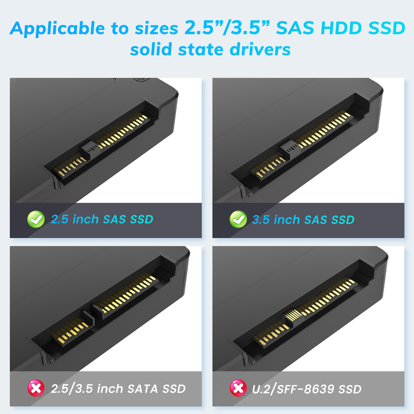 Product description: SAS to USB 3.0 Adapter, SAS Hard Drive Enclosure Reader Converter Docking Station for 2.5/3.5 inch Server HDD SSD with 12V/2A Power Adapter,Support up to 18TB