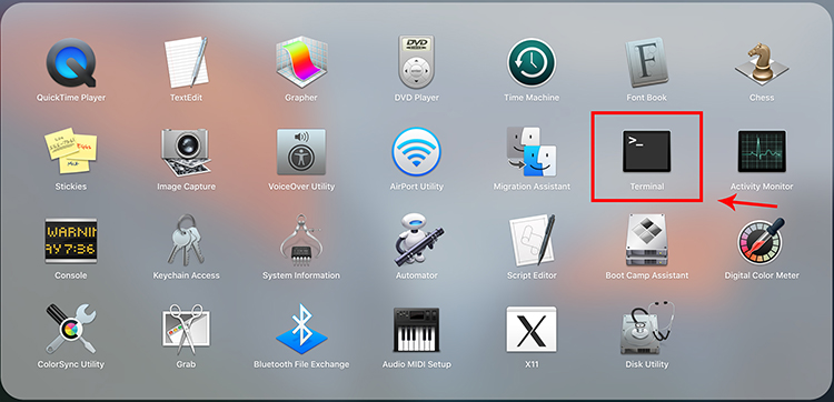 (open your Applications folder, then open the Utilities folder. Open the Terminal application.)